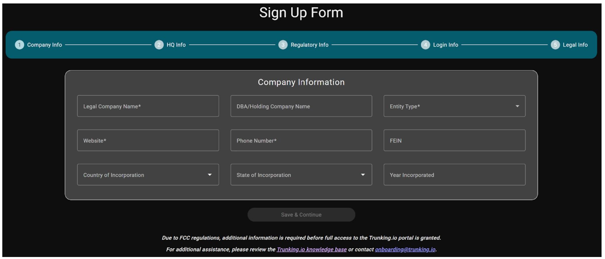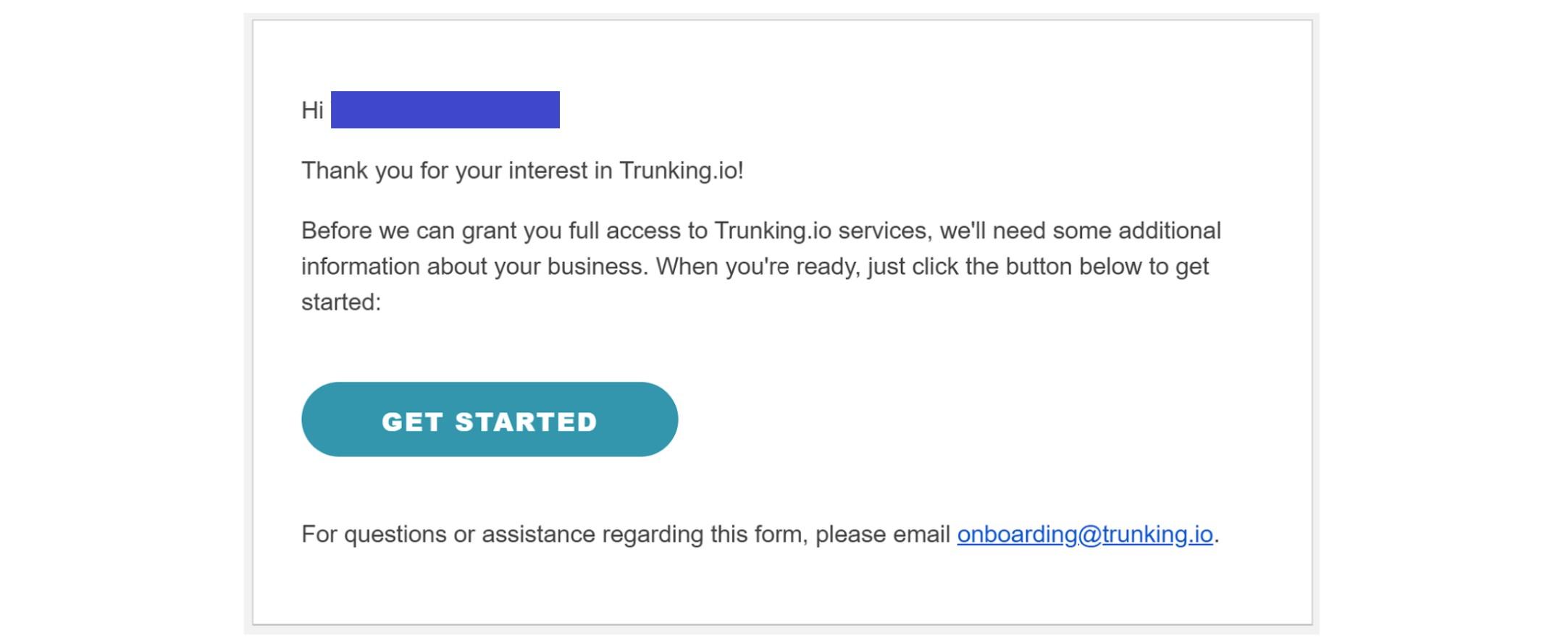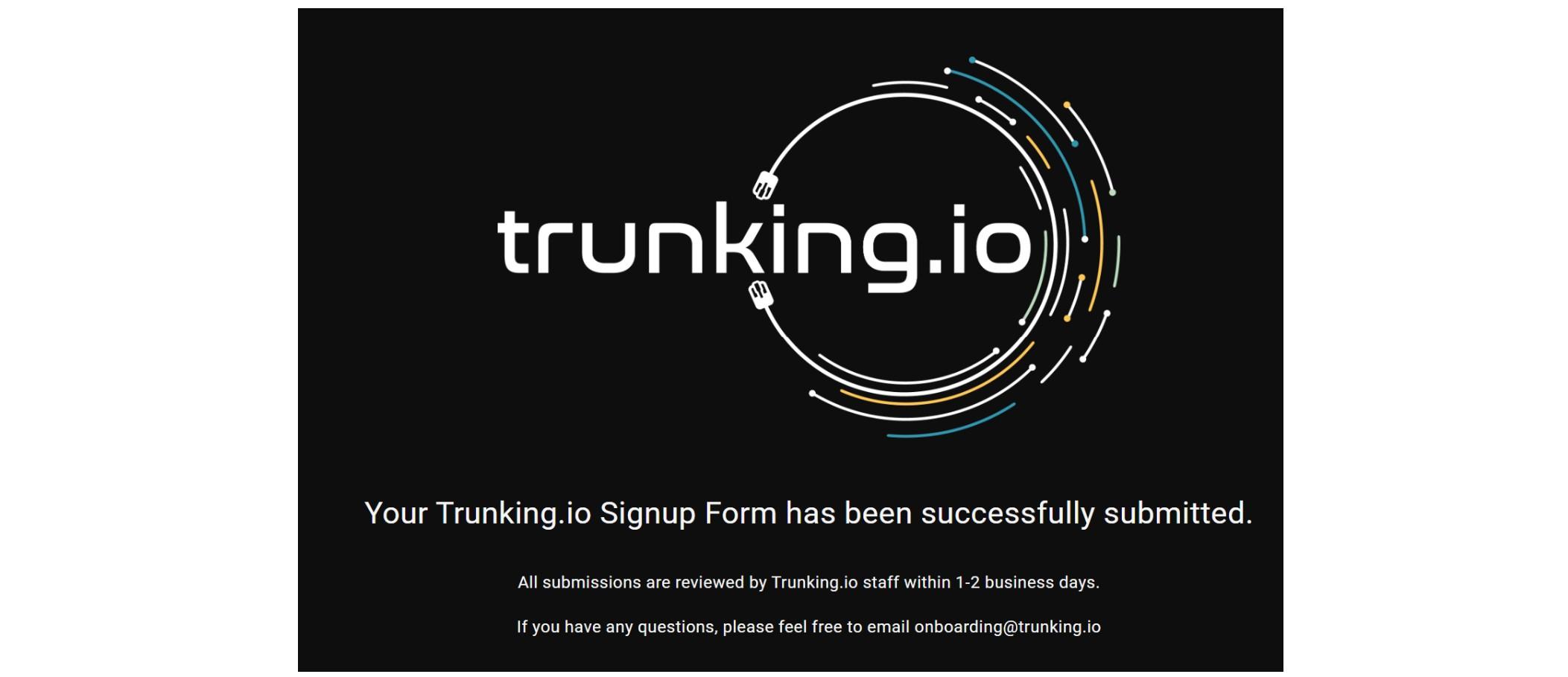 Once your application has been submitted, a Trunking.io representative will review your information and activate your account. This steps usually takes 1-2 business days. You will receive a welcome email when the account is approved.
