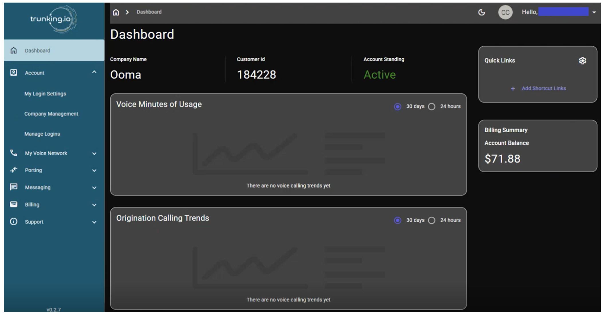 Once your account is verified, your outbound service will be automatically activated, and billing for outbound calling will transition to the Trunking.io platform and cease on the 2600Hz platform automatically. You’ll still have an additional step to follow to move your inbound calling to the Trunking.io platform — we’ll email you when we’re ready for that step. For now, just hang tight!