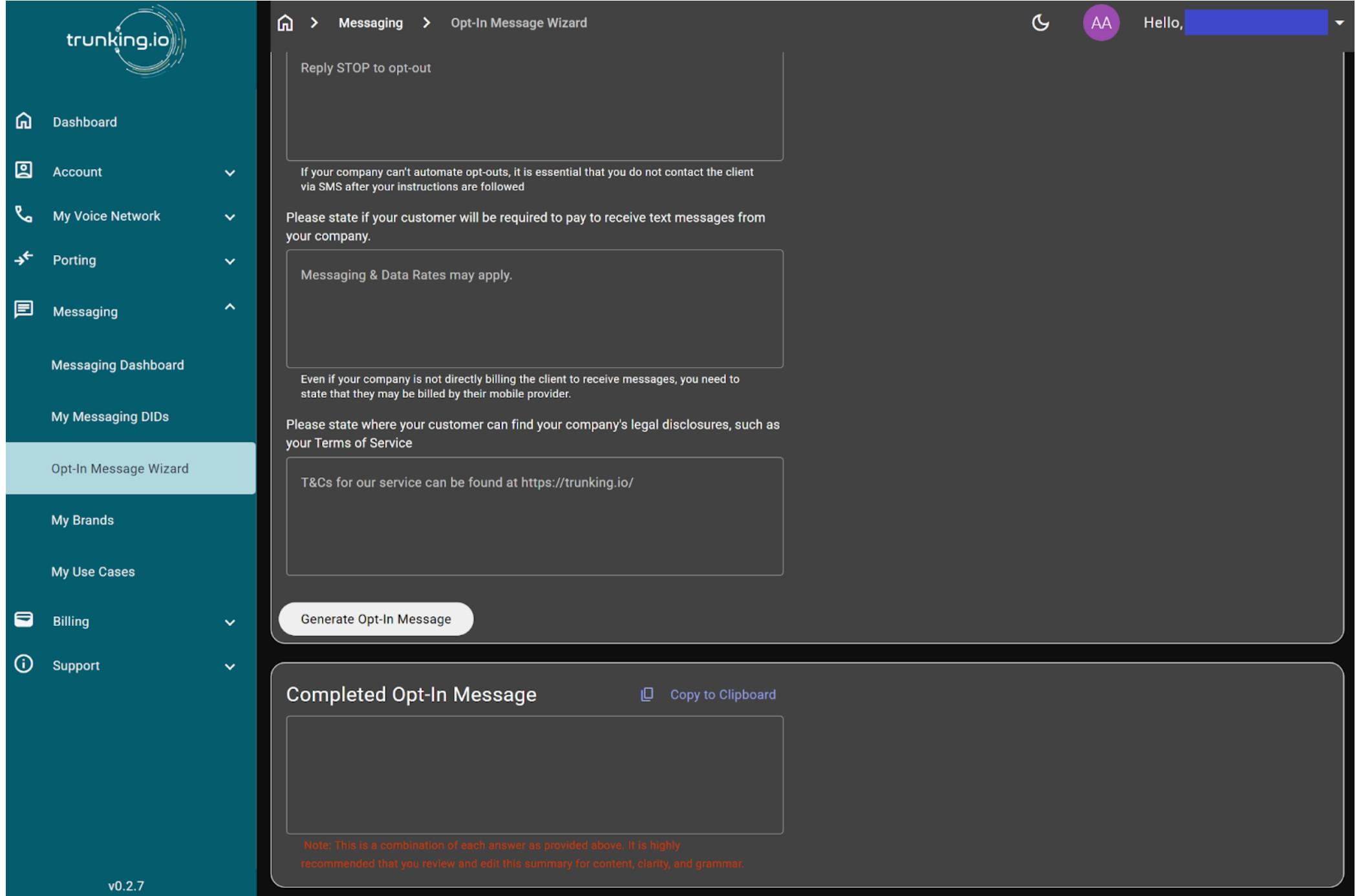 Opt-In Message Wizard: follow the wizard to set up the opt-in messages your customers will use.