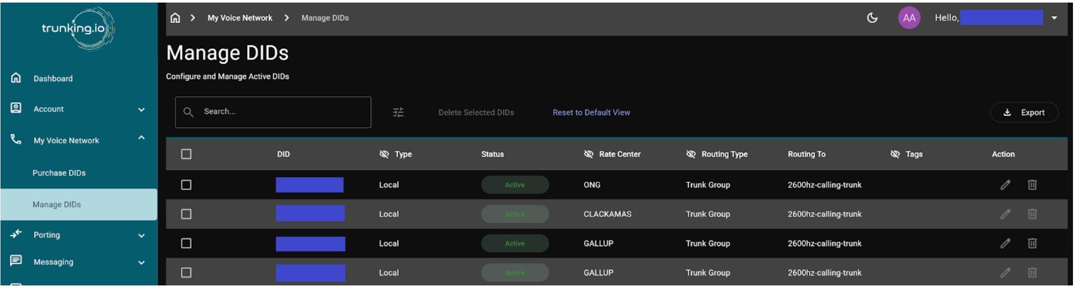Purchase DIDs: here, you can purchase DIDs from within Trunking.io’s inventory.