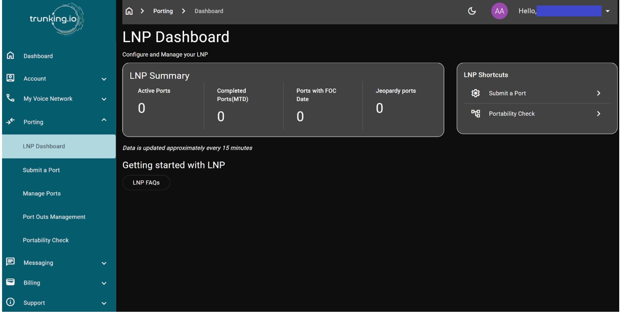 LNP Dashboard: it’s a tool that provides a summary of DIDs being ported, allowing the reseller to track and manage Local Number Portability (LNP) requests.