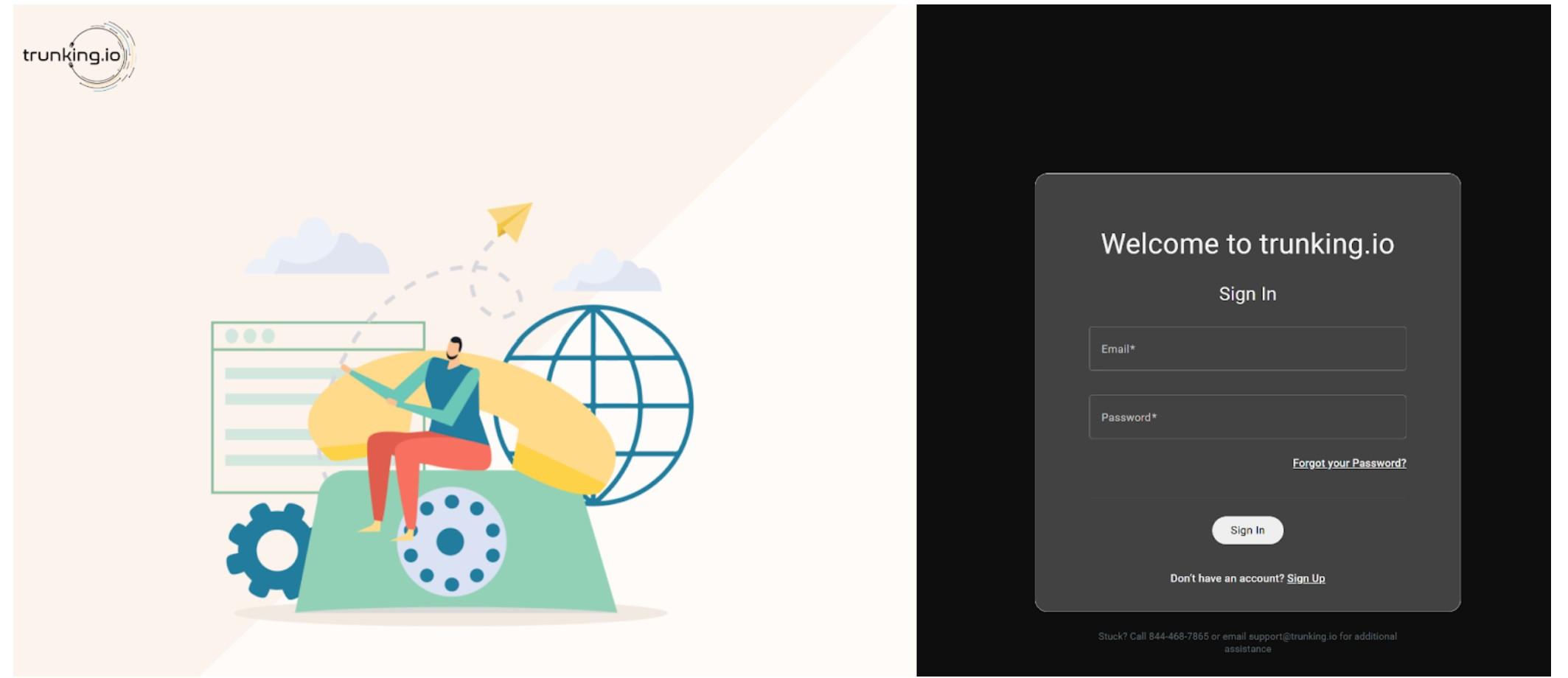If you don’t have a Trunking.io account, please refer to the corresponding article on signing up in the system, as it is too detailed to include here.