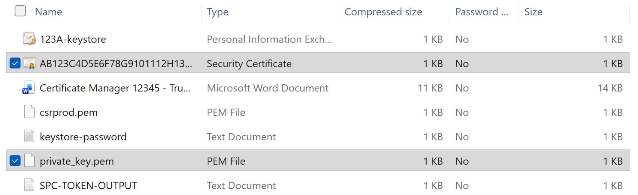 Now, you need to open again the archive file you got from the Certificate Provider. For uploading it into Trunking.io, you’ll only need two files: the security certificate and public key files, as shown in this screenshot.