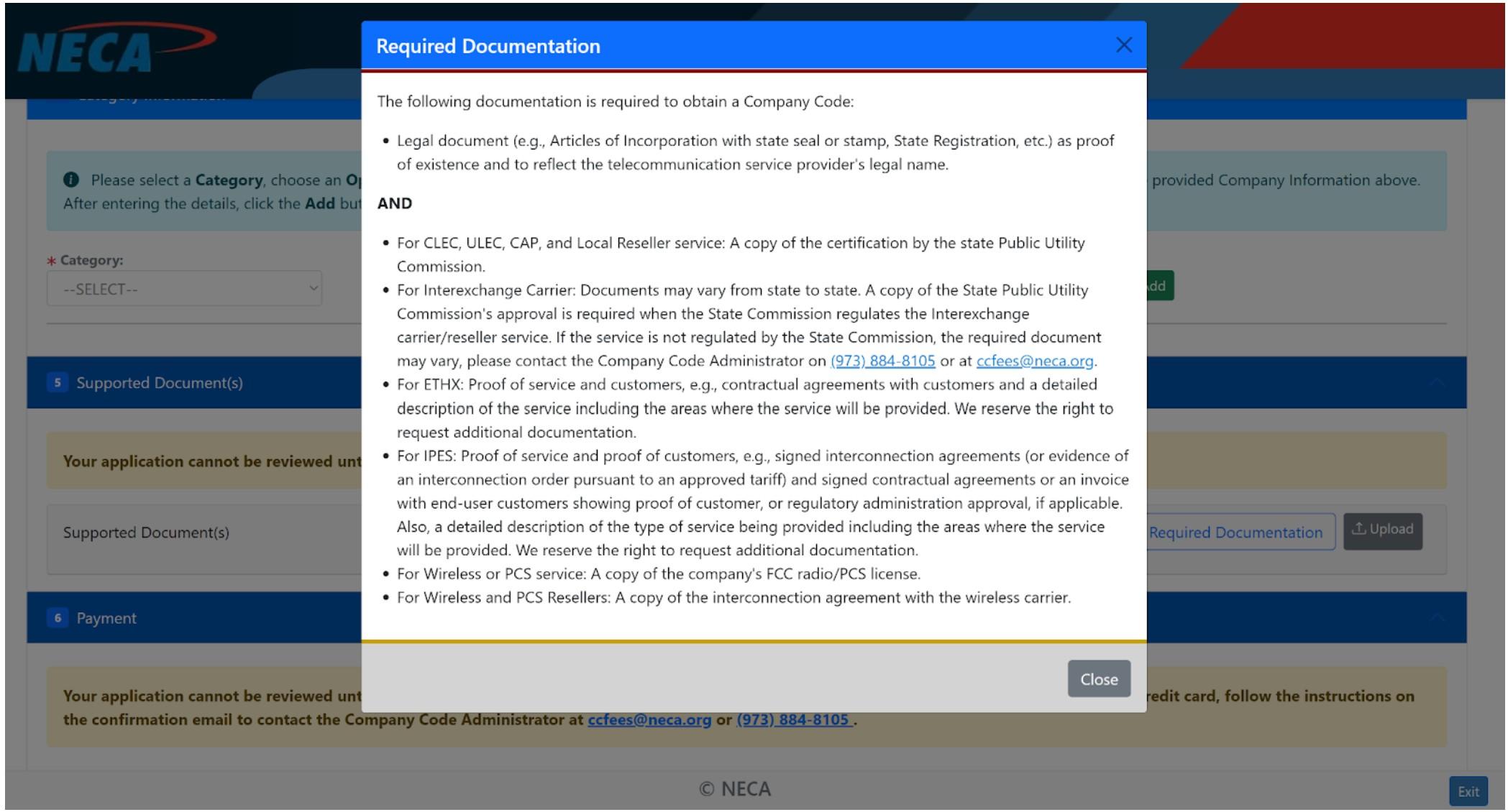 To obtain an OCN number, visit the National Exchange Carrier Association (NECA) website using this link. On the website, you can choose between submitting your request online or using the printable (offline) form; however, the following instructions apply only to the online submission process. Although this online form is fairly long, it’s straightforward to complete.