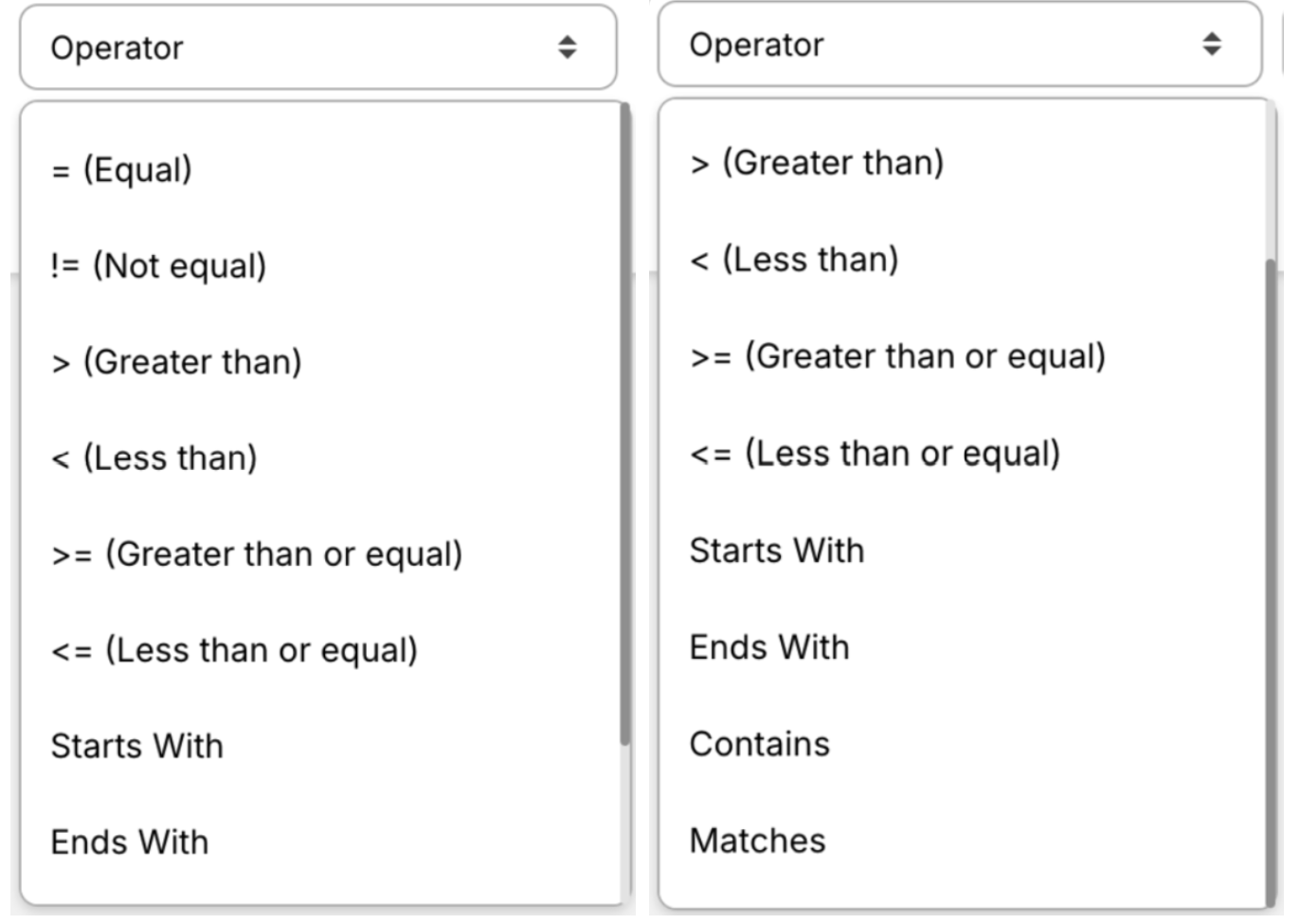 Value: here, you enter the value to compare against.