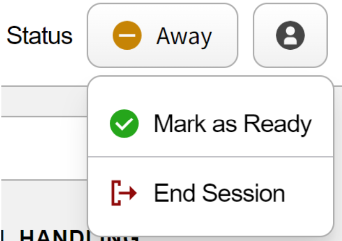 The status button lets you update your account’s status. Clicking it opens a drop-down list with options such as “Ready,” “Away,” or “End Session.”