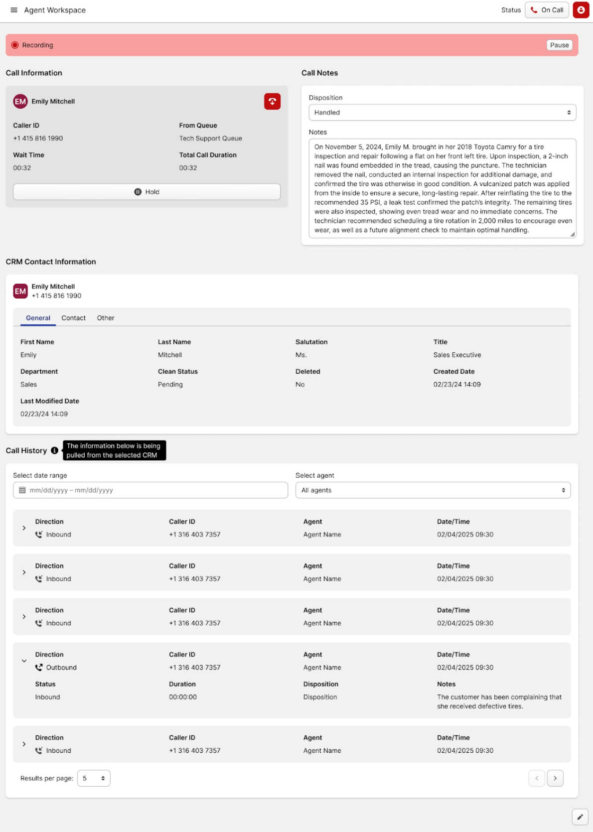 The button with the human icon provides access to the agent workspace, where you can enter call details, notes, and other related information.