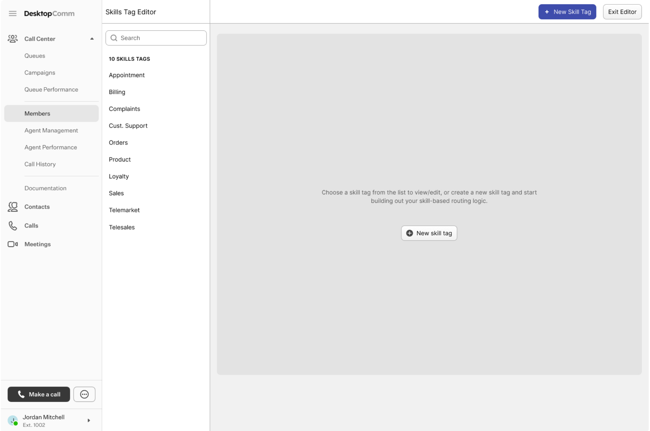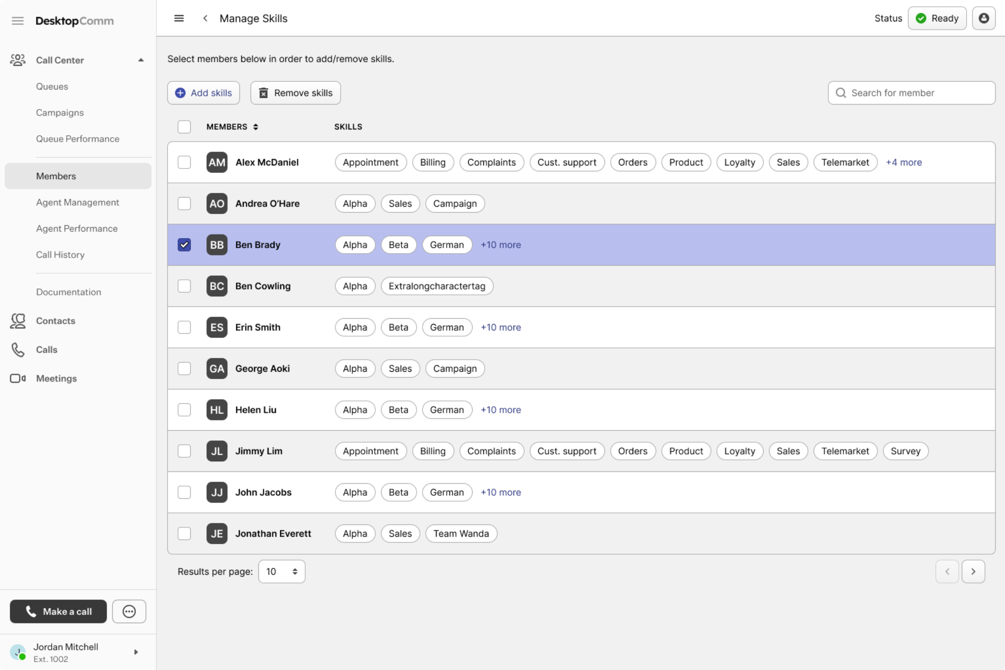 Here, you can manage your call center members’ skills.