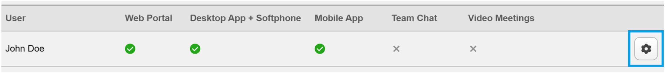 Clicking the Gear Button allows you to access the individual settings for the selected user.
